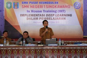 Kepala SMK Negeri 1 Singkawang, Bapak Yudi Firman Santosa, S.T, M.Ti, dalam sambutannya menyampaikan bahwa IHT ini merupakan bagian dari kegiatan sekolah.“Kami ingin membekali para guru dengan pemahaman praktis tentang deep learning, agar mereka mampu mengintegrasikan teknologi ini dalam proses belajar-mengajar maupun dalam pengembangan kompetensi siswa, tentunya untuk itu semua, SMK Negeri 1 Singkawang menghadirkan beberapa narasumber untuk menyampaikan materi dalam kegiatan IHT” ungkap beliau.